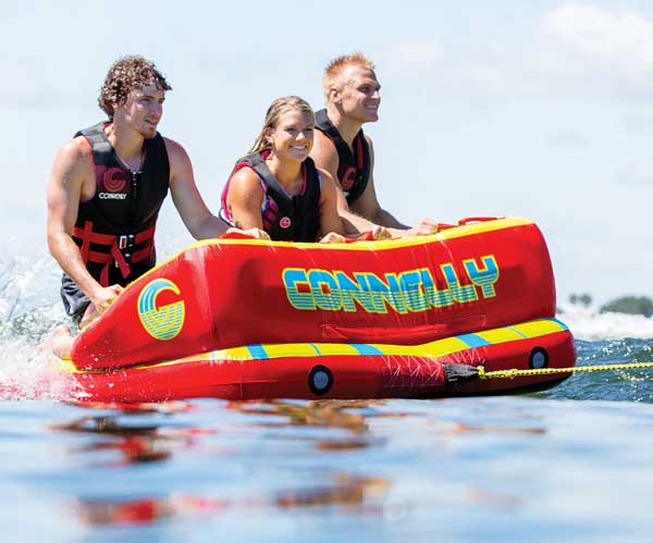 The new and improved 2026 Connelly Fun 3 has an innovative hybrid design that gives riders two totally different experiences behind the boat. Pulled from the front, the Fun 3 is a great sit-on-top tube perfect for riders who are looking for a comfortable ride. Towed from the rear, riders are seated in a kneeling position gliding over wakes with ease. Pull in either direction - you know you can keep the entire family happy with the Fun 3. Inflatable tow tube is built to last made from durable an 840D nylon cover and heavy-duty bladder with radio frequency (RF) welded seams. Quick connect tube rope attachment for fast hook-ups. Inflation and deflation are made easy with the Boston valve.