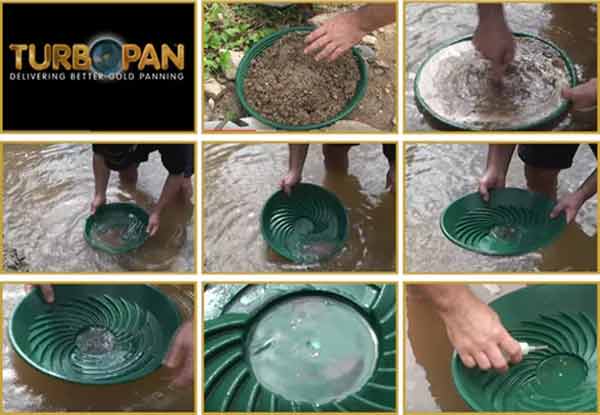 The Turbopan was designed by a Gold Panning world champion, a geologist and prospector with 30 years of experience. He wanted to make a gold pan that was simple to use, was very fast, got all the gold all the time and produced consistent results.