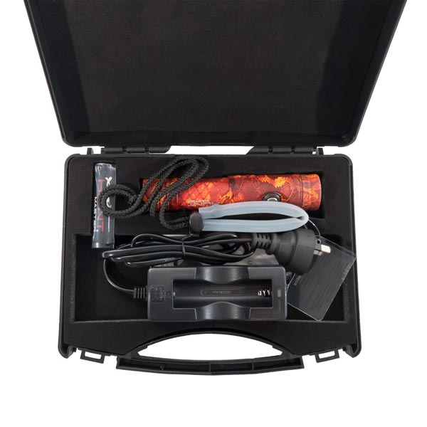 The HUNTMASTER HALO rechargeable torch uses a genuine high quality CREE XM-L2 (U4) LED with over 50,000 hours battery life. With a maximum brightness of 1050 lumens, and a 10-degree narrow beam, you can expect bright white light while searching in caves, wrecks and reef.