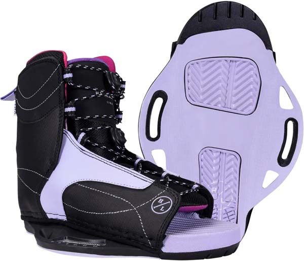 The Hyperlite Jinx is a supportive and easy to get into adjustable wakeboard binding. It features Dual Lace Zones like much more expensive boots, plus the plushness you come to expect from an open toe binding. The 3D molded tongue provides maximum comfort with no sacrificed board control. The Jinx is an excellent choice for beginner to intermediate riders looking for a comfortable, user-friendly option.