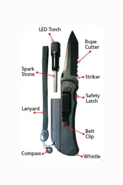 Multi Function Survival Tool. Everything you need in one Lightweight Knife. A must for the great outdoors.