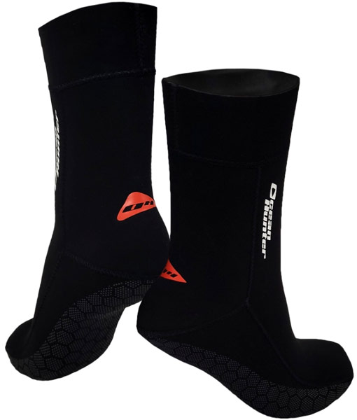 The Ocean Hunter Ultra Stretch sock is the perfect addition to your spearfishing kit. Crafted with 2.5mm double-lined ultra stretch neoprene, it offers superior comfort and protection for your feet along with the ability to fill out a foot pocket, should you be an in between size. With a 2.5mm ultra stretch non-slip Glideskin internal lining around the ankle, you’ll have a secure water minimising fit during your dives. The sock is also glued and blind-stitched for extra durability, with a PU Printing on the sole provides extra grip. With the Ocean Hunter Ultra Stretch sock you’ll have comfort, security, and the performance you need for a successful diving adventure.