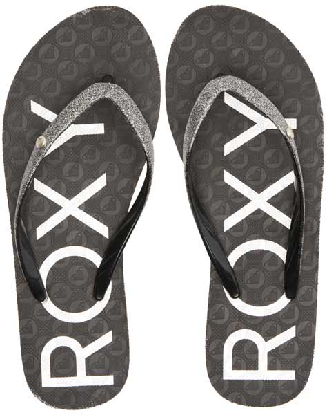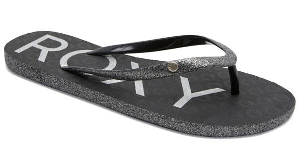 Lightweight and durable, these Roxy women's flip-flop sandals are designed with a printed footbed and a flexible rubber outsole, Finished with a glitter touch.